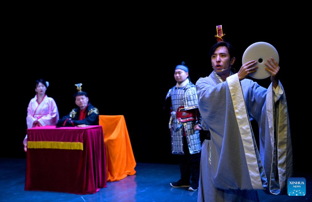 Artists perform a textbook-based play at a theater in Xi'an, northwest China's Shaanxi Province, Dec. 30, 2023. Dramas, concerts and shows for children were staged during the New Year holiday in the northwestern city of Xi'an. (Xinhua/Liu Xiao)