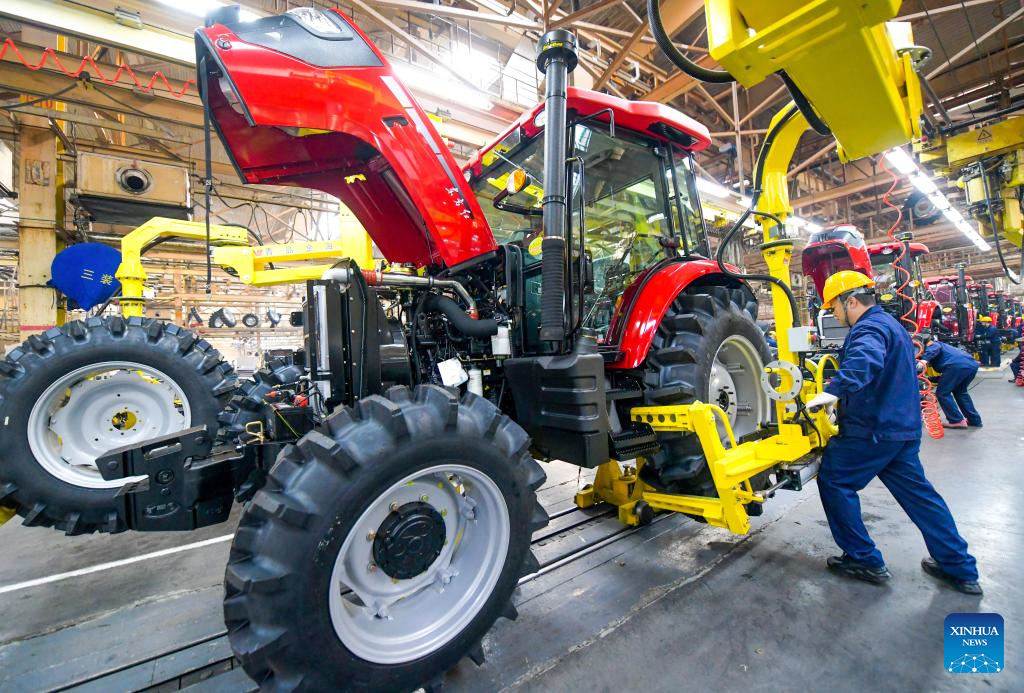Workers assemble tractors in Luoyang, central China's Henan Province, Jan. 2, 2024. Workers around China have returned to their respective posts after the New Year holiday. (Photo by Zhang Yixi/Xinhua)