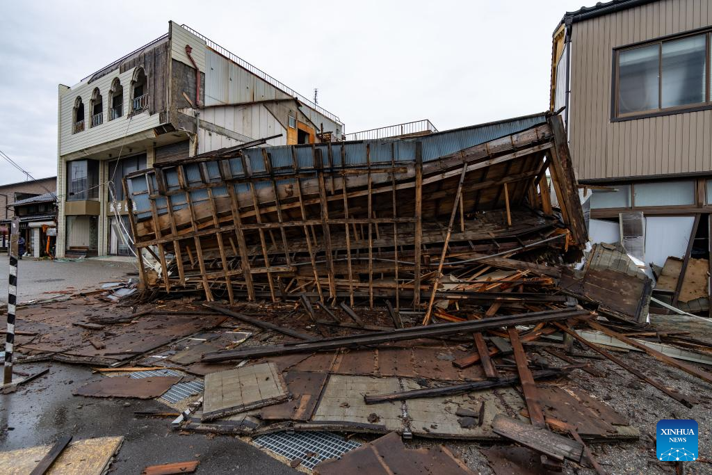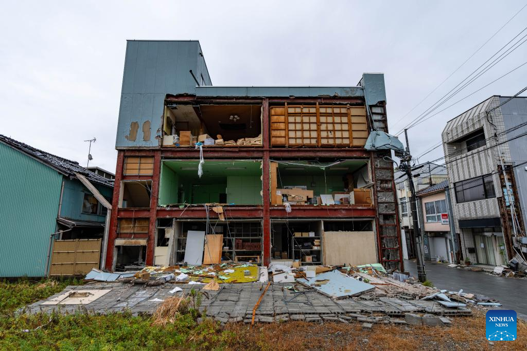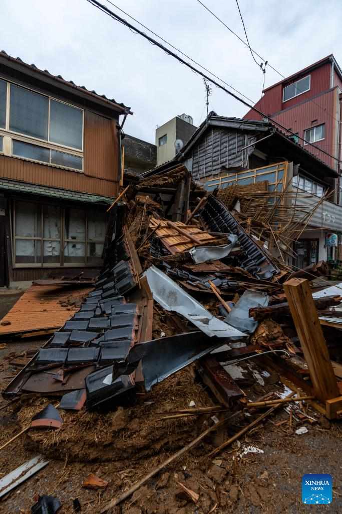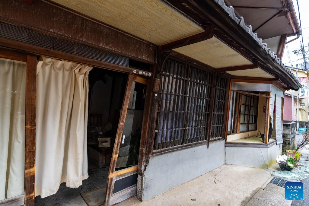 This photo taken on Jan. 3, 2024 shows earthquake-damaged houses in Nanao, Ishikawa prefecture. (Xinhua/Zhang Xiaoyu)