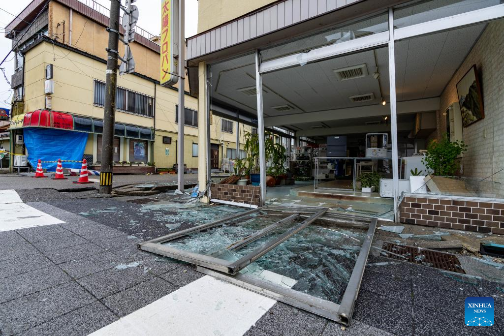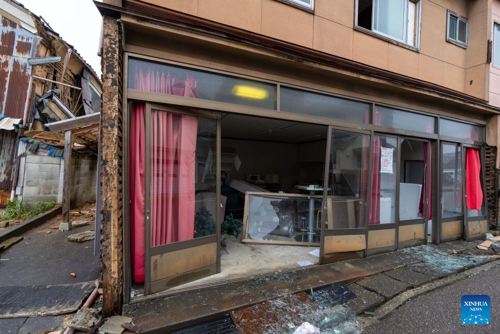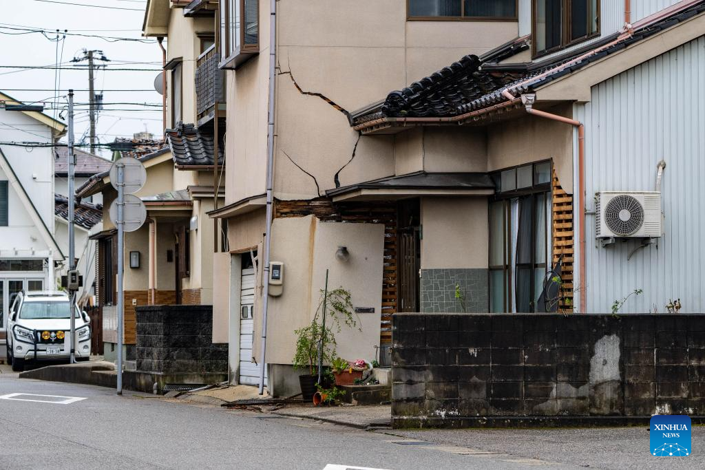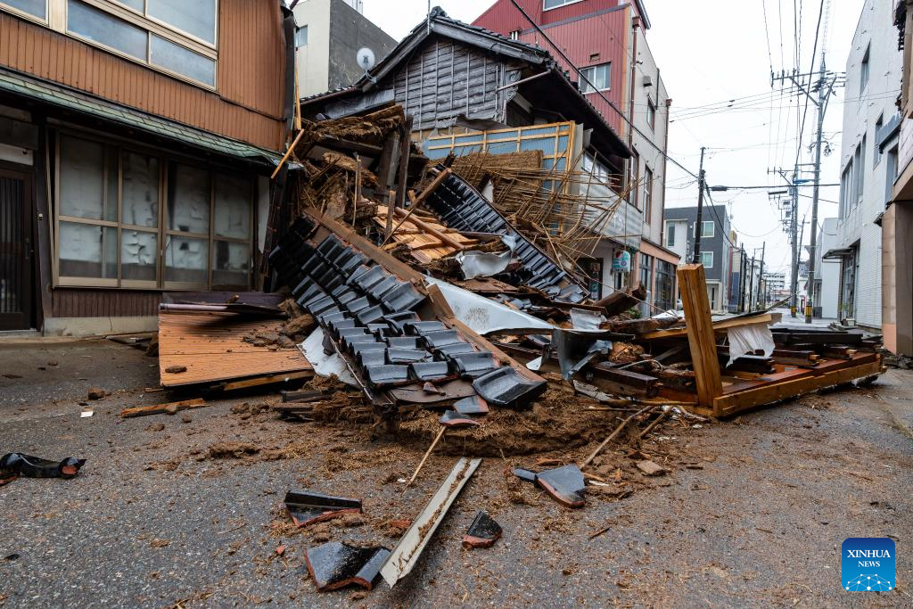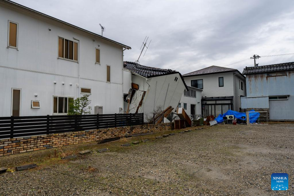 This photo taken on Jan. 3, 2024 shows earthquake-damaged houses in Nanao, Ishikawa prefecture. (Xinhua/Zhang Xiaoyu)
