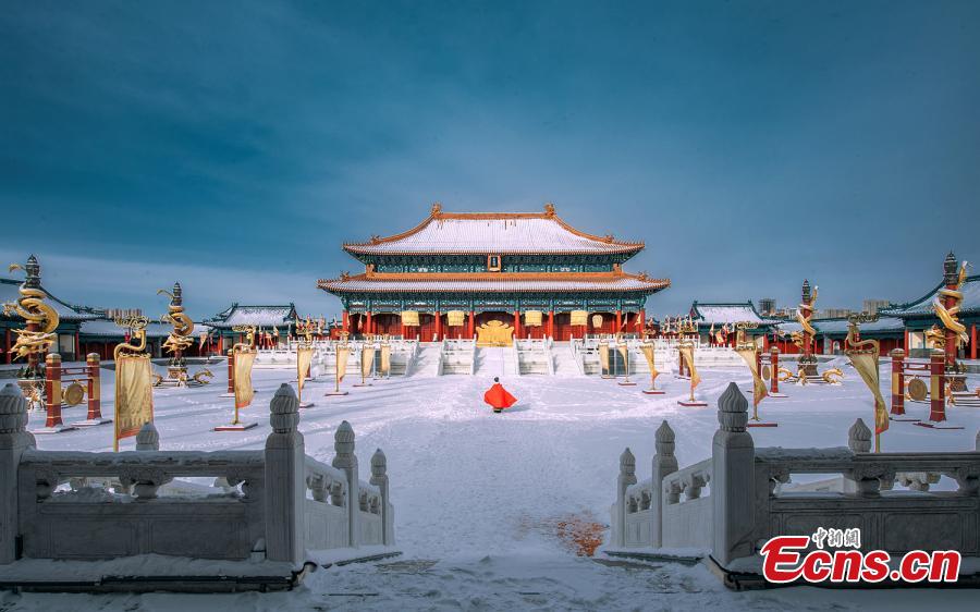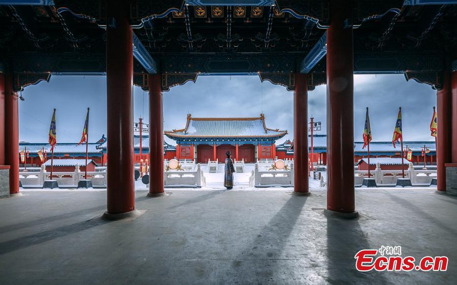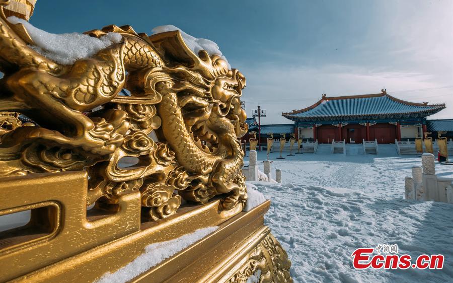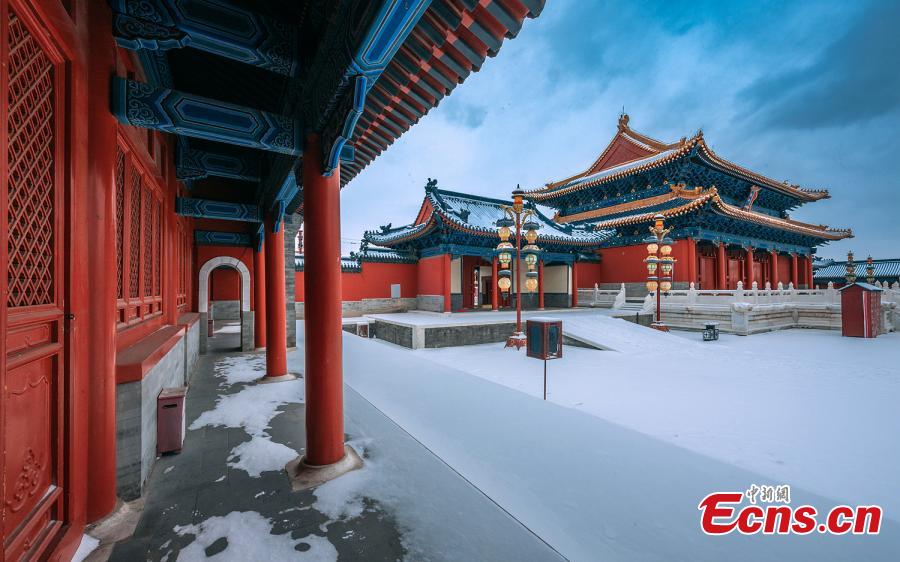 Snow covers Huayan temple, turning the ancient temple into a white wonderland in Datong, north China's Shanxi Province. (Photo: China News Service/Fan Liyong)