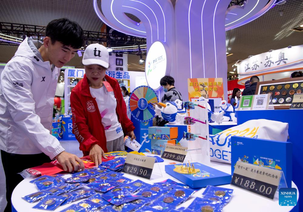 People visit the 5th China Marathon Expo in Xiamen, southeast China's Fujian Province, Jan. 4, 2024. (Xinhua/Wei Peiquan)