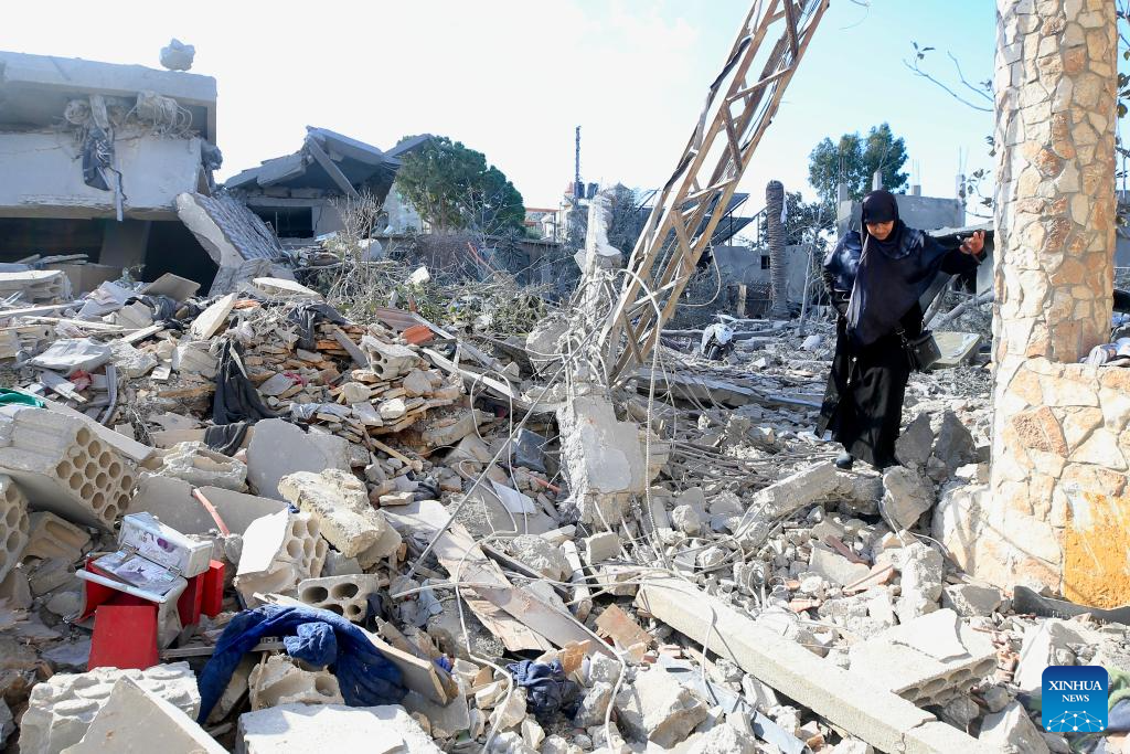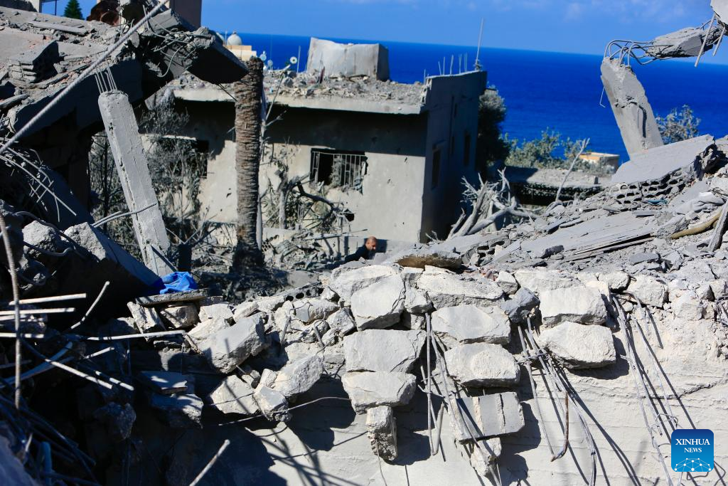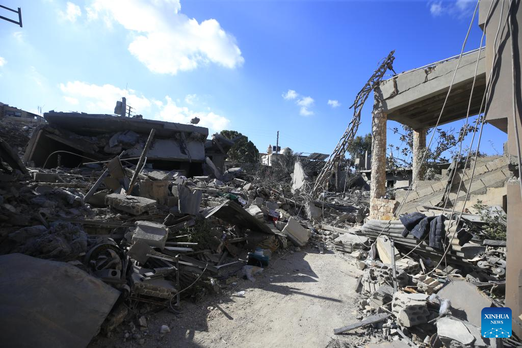 Photo taken on Jan. 4, 2024 shows buildings destroyed in an Israeli airstrike in Naqoura, Lebanon. Israeli Defense Minister Yoav Gallant said on Thursday the window of time for a diplomatic solution with Hezbollah is short. (Photo by Ali Hashisho/Xinhua)