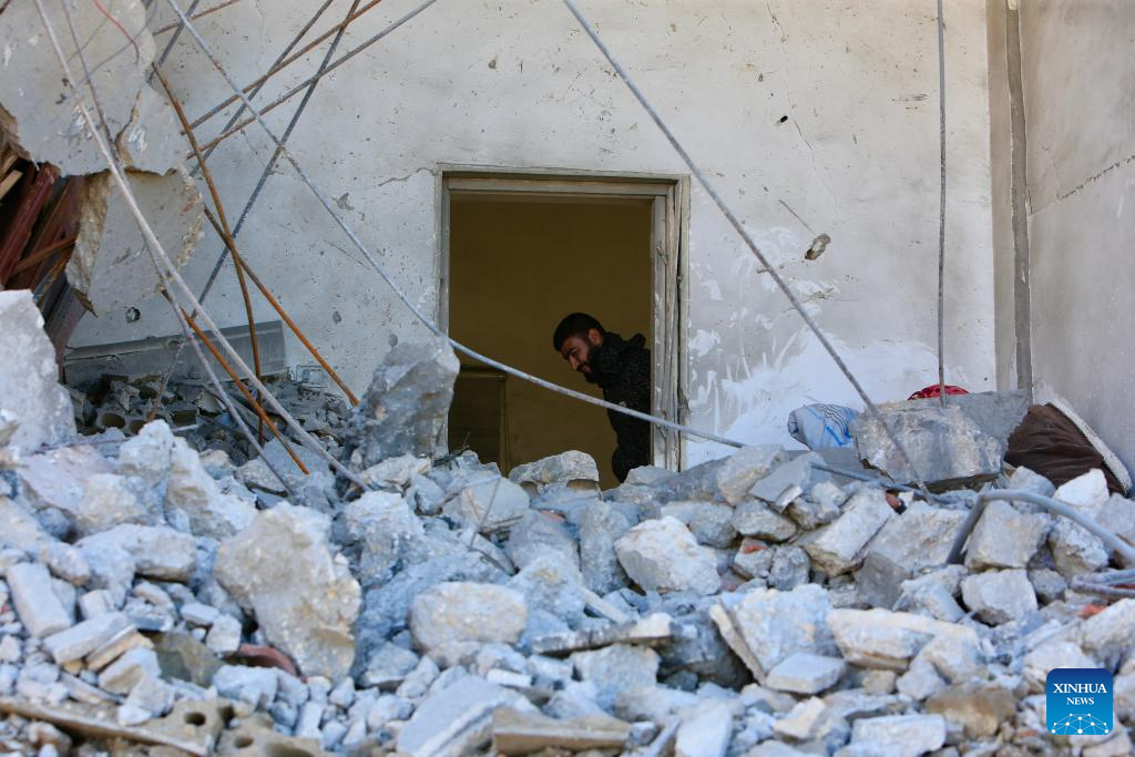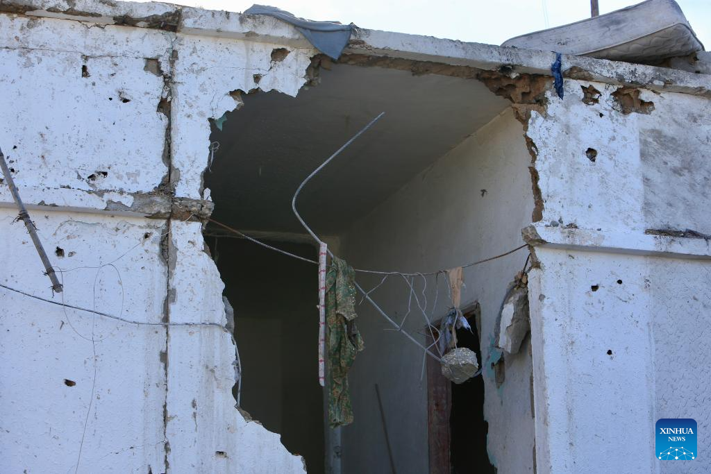 Photo taken on Jan. 4, 2024 shows a building damaged in an Israeli airstrike in Naqoura, Lebanon. Israeli Defense Minister Yoav Gallant said on Thursday the window of time for a diplomatic solution with Hezbollah is short. (Photo by Ali Hashisho/Xinhua)