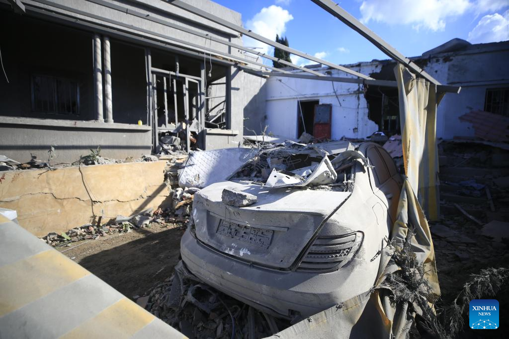Photo taken on Jan. 4, 2024 shows a house and a car damaged in an Israeli airstrike in Naqoura, Lebanon. Israeli Defense Minister Yoav Gallant said on Thursday the window of time for a diplomatic solution with Hezbollah is short. (Photo by Ali Hashisho/Xinhua)