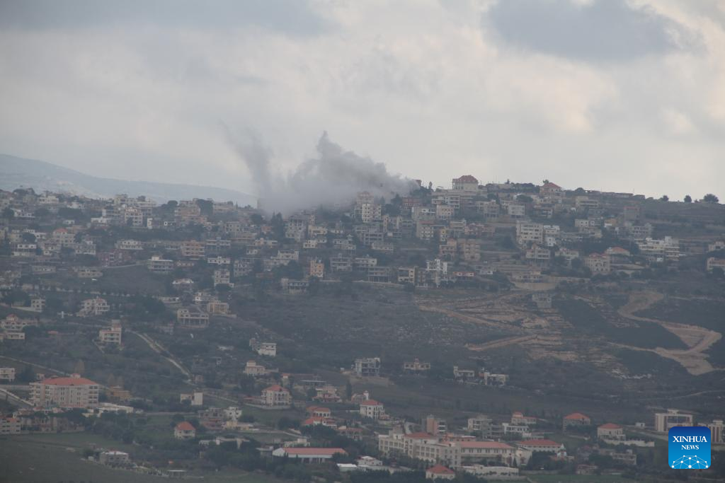 Smoke rises after an Israeli airstrike in Khiam, Lebanon, on Jan. 4, 2024. Israeli Defense Minister Yoav Gallant said on Thursday the window of time for a diplomatic solution with Hezbollah is short. (Photo by Taher Abu Hamdan/Xinhua)