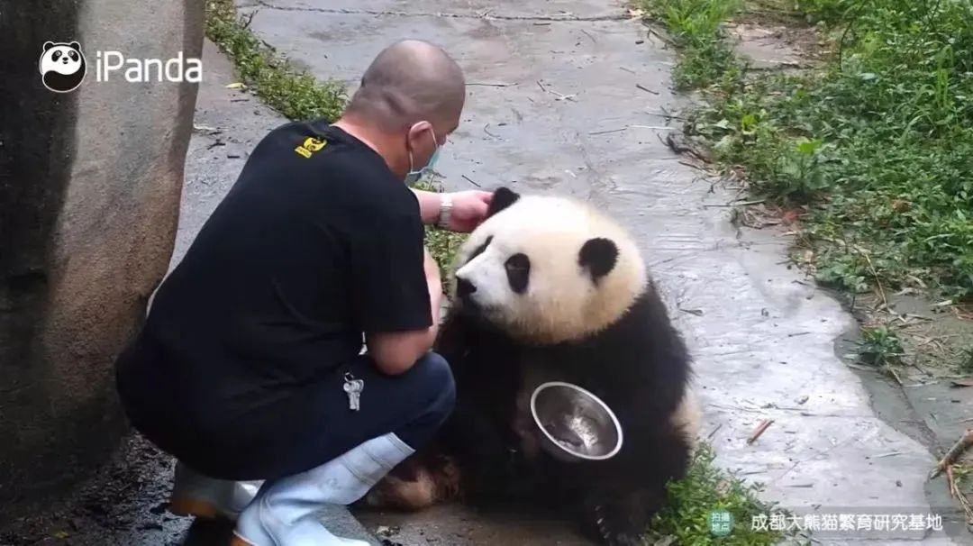 Photo shows giant panda Hua Hua and her caretaker Tan Jintao. (Photo/CCTV Newscenter)