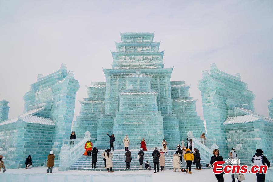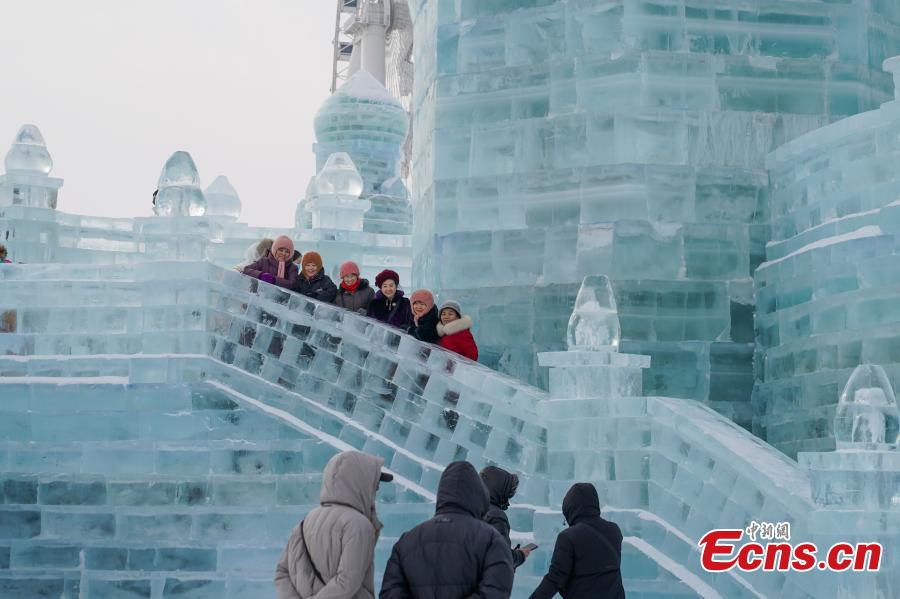 Tourists visit the Harbin Ice and Snow World, a real-life Disney's Frozen world, during the annual Harbin Ice and Snow Sculpture Festival in northeast China's Heilongjiang Province, Jan. 4, 2024. (Photo: China News Service/Zhao Yuhang)