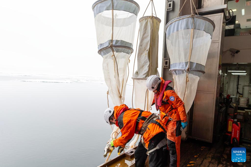 Members of China's 40th Antarctic expedition team conduct scientific work aboard China's research icebreaker Xuelong 2 in the Amundsen Sea, Jan. 7, 2024. Members of China's 40th Antarctic expedition team have recently conducted scientific work aboard China's research icebreaker Xuelong 2 in the Amundsen Sea. (Xinhua/Zhou Yuan)