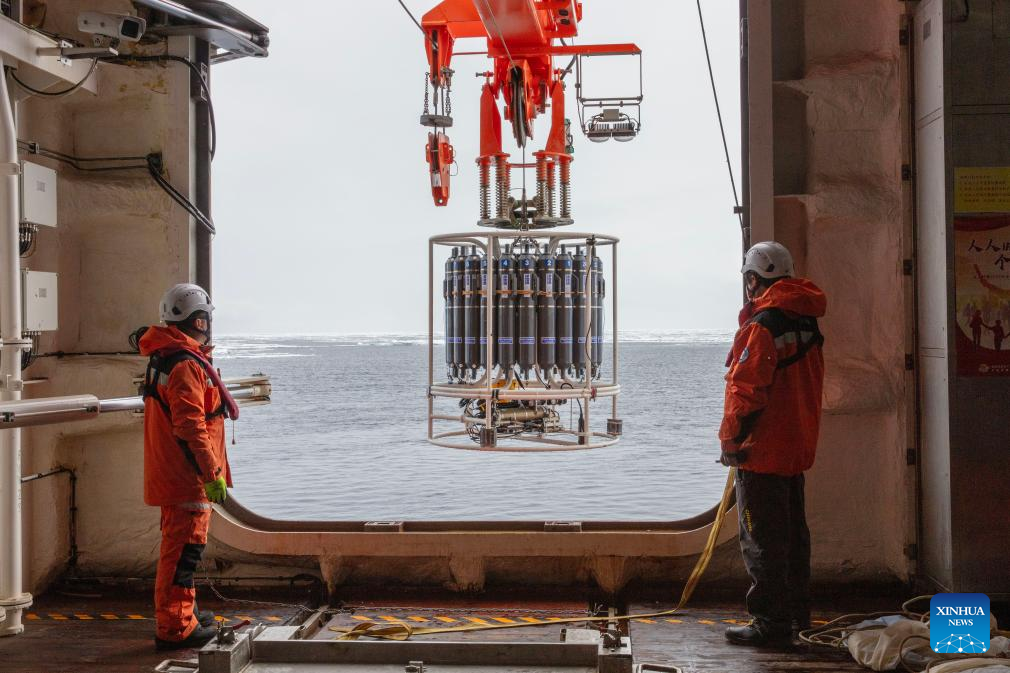 Members of China's 40th Antarctic expedition team conduct scientific work aboard China's research icebreaker Xuelong 2 in the Amundsen Sea, Jan. 6, 2024. Members of China's 40th Antarctic expedition team have recently conducted scientific work aboard China's research icebreaker Xuelong 2 in the Amundsen Sea. (Xinhua/Zhou Yuan)
