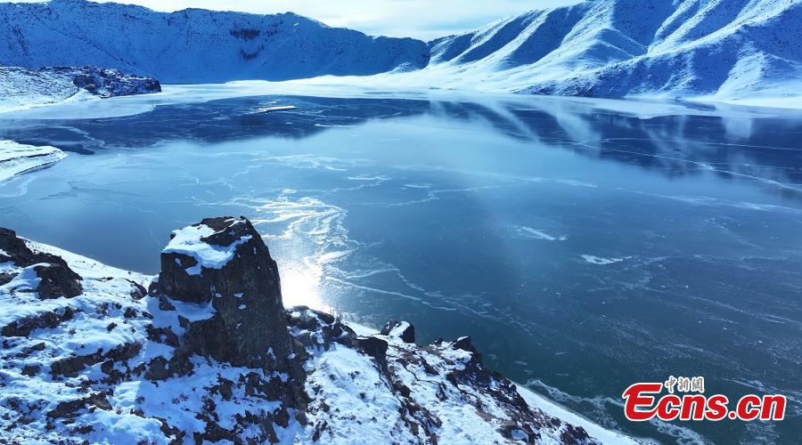 Frozen lake is covered with snow in Qinghe County of Altay, northwest China's Xinjiang Uygur Autonomous Region. (Photo: China News Service/Cao Fengxia)