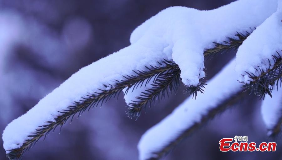 Pine tree branches are covered with snow in Qinghe County of Altay, northwest China's Xinjiang Uygur Autonomous Region. (Photo: China News Service/Cao Fengxia)
