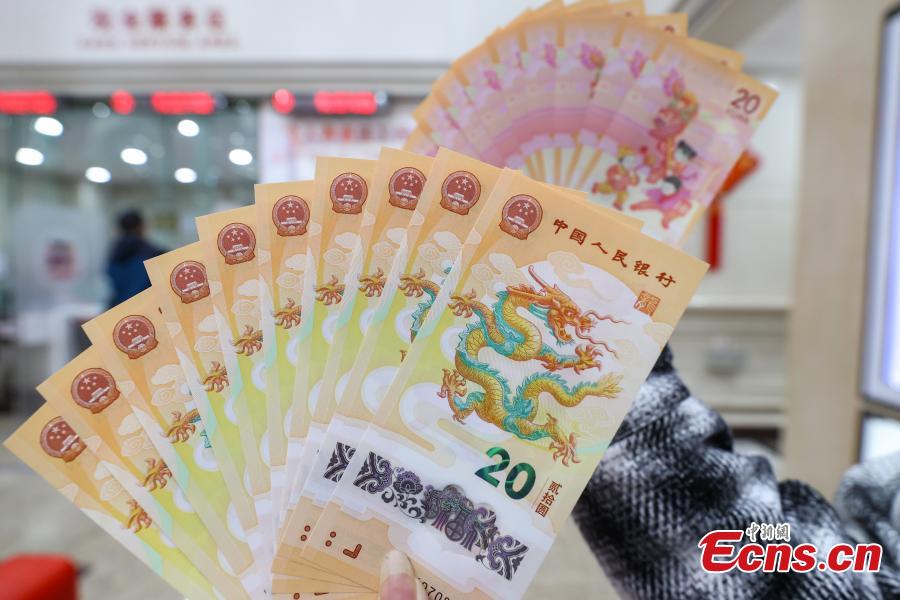 A citizen displays the 2024 New Year commemorative banknotes at a bank in Guiyang, southwest China's Guizhou Province, Jan. 9, 2024. (Photo: China News Service/Qu Honglun)