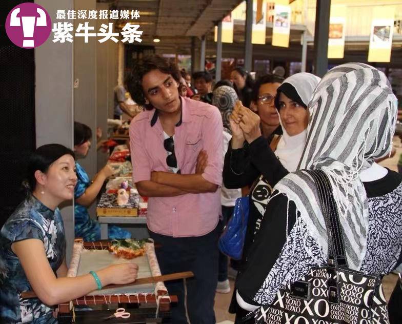 Photo shows foreigners interested in Wuxi fine embroidery. (yangtse.com/courtesy of interviewee)