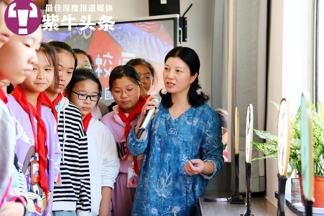 Bao Wenji introduces Wuxi fine embroidery to students. (yangtse.com/courtesy of interviewee)