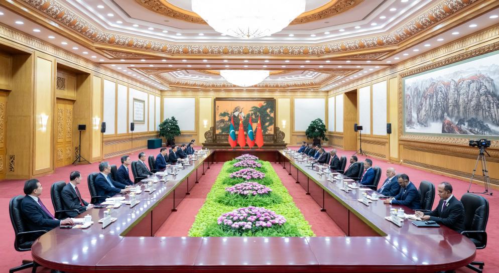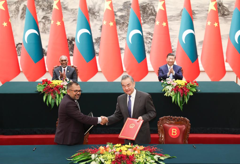 He called on the two sides to strengthen cooperation in such areas as the economy, trade and investment, agricultural parks, and the blue, green and digital economies. He also called for expanded cooperation on marine ecological and environmental protection, as well as strengthened people-to-people exchanges. He said China will support more Maldivian students to study in China and promote more direct flights between the two countries.