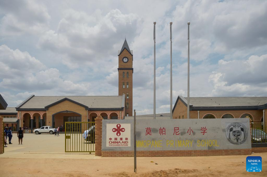 Photo taken on Jan. 9, 2024 shows China-aided Mmopane Primary School in Mmopane, Kweneng District, Botswana. China-aided Mmopane Primary School celebrated its first-ever Primary School Leaving Examination (PSLE) in style on Tuesday, topping Kweneng District in southern Botswana with a pass rate of 98.3 percent. (Photo by Tshekiso Tebalo/Xinhua)
