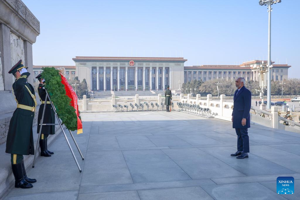Maldivian president lays wreath at Monument to People's Heroes in Beijing
