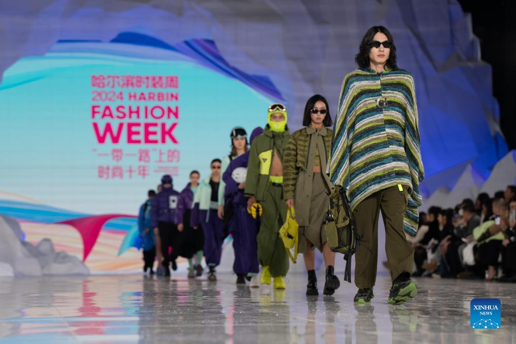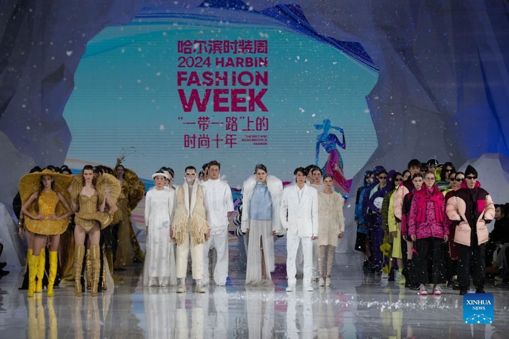 Models present creations at the Harbin Fashion Week in Harbin, northeast China's Heilongjiang Province, Jan. 11, 2024. The 2024 Harbin Fashion Week kicked off here on Thursday. (Xinhua/Xie Jianfei)