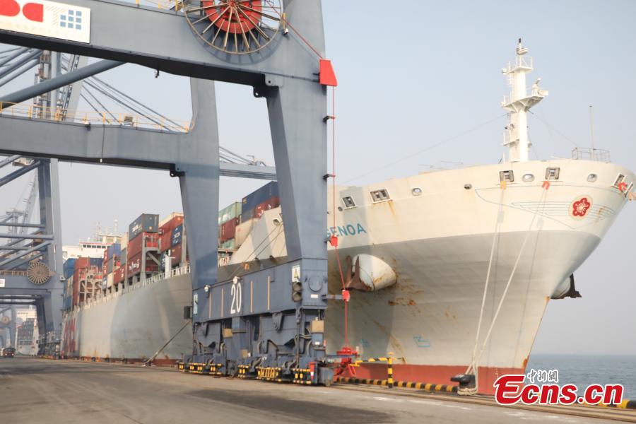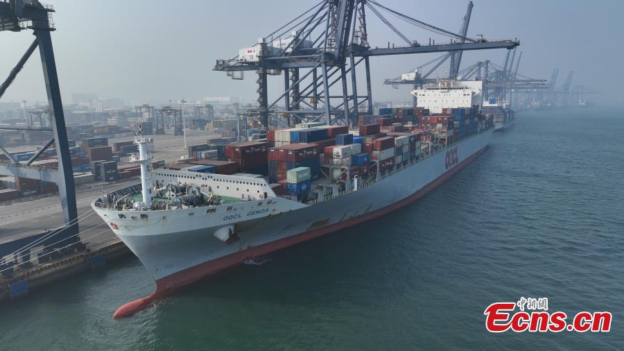A container ship berths at a port in Dalian, northeast China's Liaoning Province, Jan. 11, 2024. (Photo: China News Service/Yang Yi)