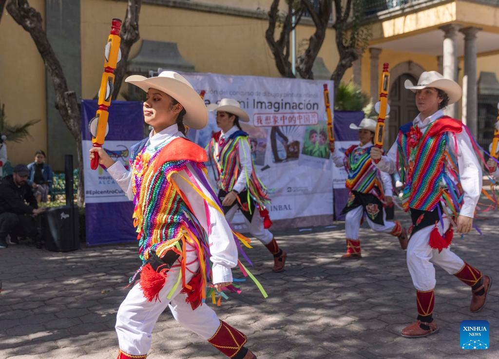 This photo taken on Jan. 10, 2024 shows a dance performance in Mexico City, Mexico. The tenth "China in my imagination" children's painting contest held its awarding ceremony and the opening ceremony of an exhibition of the entries on Wednesday. (Xinhua/Li Mengxin)