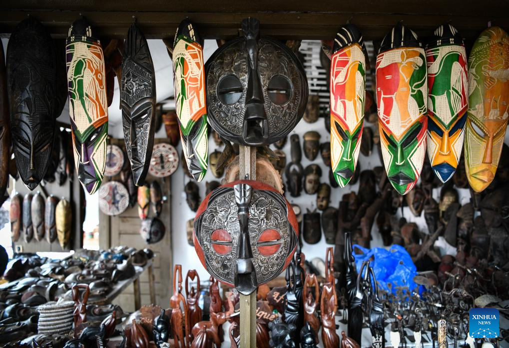 This photo taken on Jan. 12, 2024 shows a shop at a handicraft market in Abidjan, Cote d'Ivoire. (Xinhua/Han Xu)