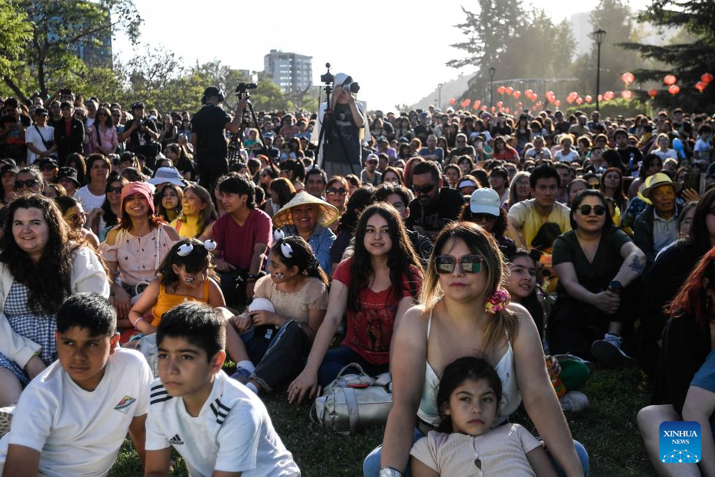 People watch a show during an event to greet the upcoming Spring Festival in Santiago, Chile, Jan. 13, 2024. (Photo by Jorge Villegas/Xinhua)