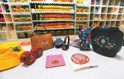 Photo shows some of the cultural and creative embroidery products designed and crafted by Kader Rahman, an inheritor of traditional Uygur embroidery in Hami city, northwest China's Xinjiang Uygur Autonomous Region. (Photo courtesy of Dawuti Rexiati)