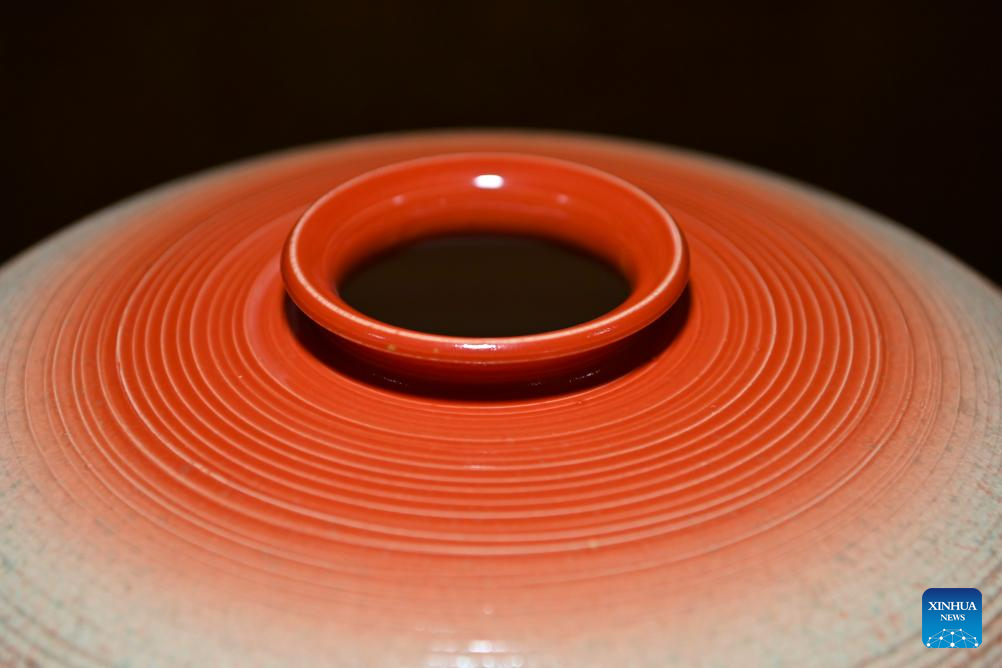 A porcelain ware is displayed at a Honglyucai (Red and Green Color) Porcelain museum in Honglyucai Village, Changzhi City of north China's Shanxi Province, Jan. 3, 2024.(Xinhua/Yang Chenguang)