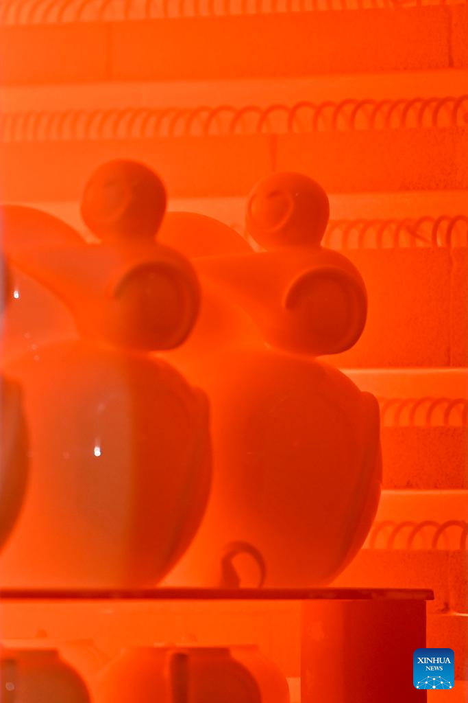 Fired porcelain artworks wait for cooling down at a production base of Honglyucai (Red and Green Color) Porcelain in Honglyucai Village, Changzhi City of north China's Shanxi Province, Jan. 4, 2024.(Xinhua/Yang Chenguang)