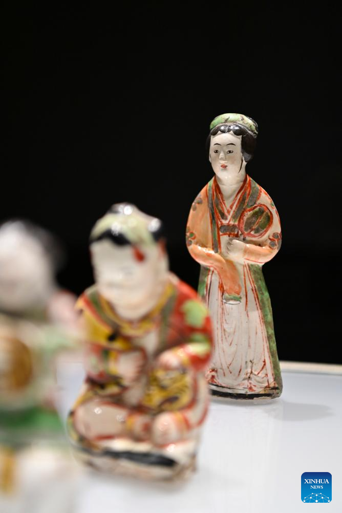 Porcelain artworks are displayed at a Honglyucai (Red and Green Color) Porcelain museum in Honglyucai Village, Changzhi City of north China's Shanxi Province, Jan. 3, 2024. (Xinhua/Yang Chenguang)
