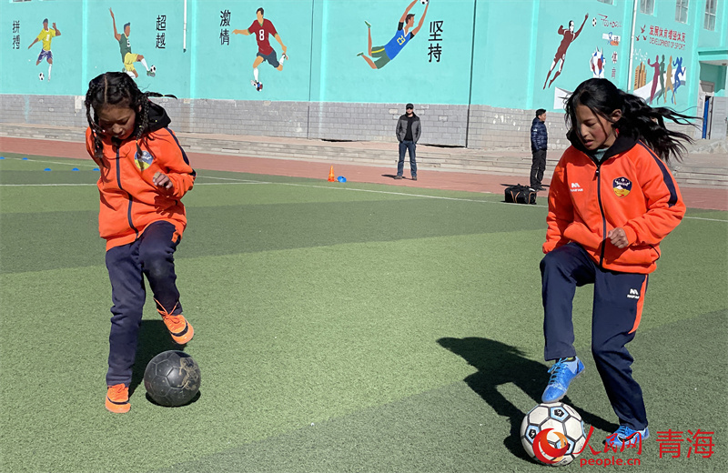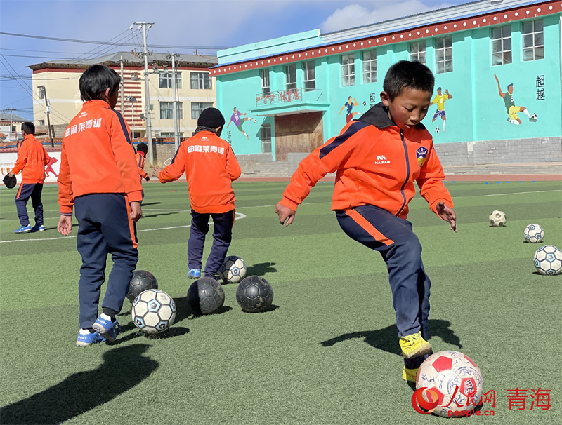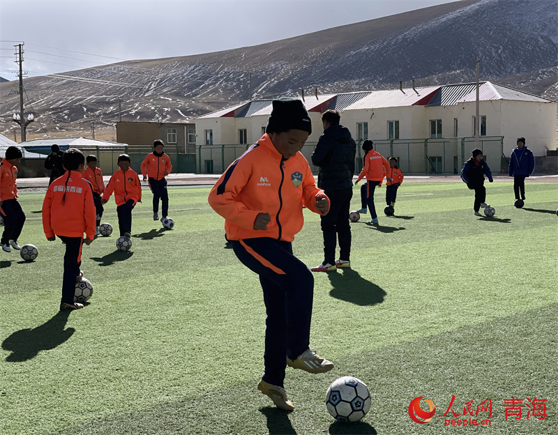 Students receive football training at a school in Qumalai county, Yushu Tibetan Autonomous Prefecture, northwest China's Qinghai Province. (People's Daily Online/Kuang Yu)