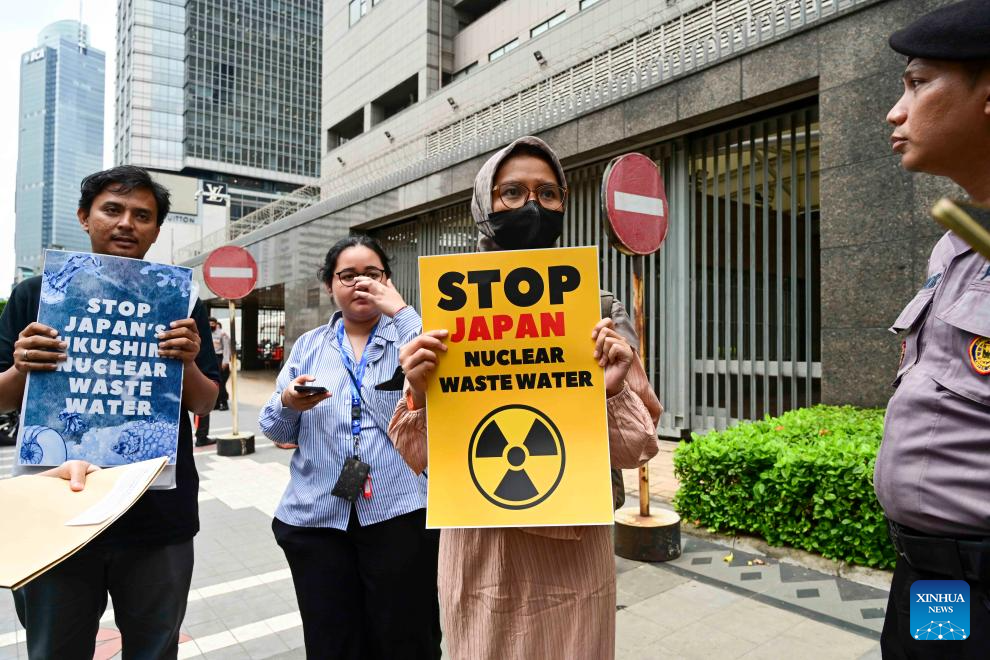 People protest against Japan's discharging contaminated water in Jakarta, Indonesia
