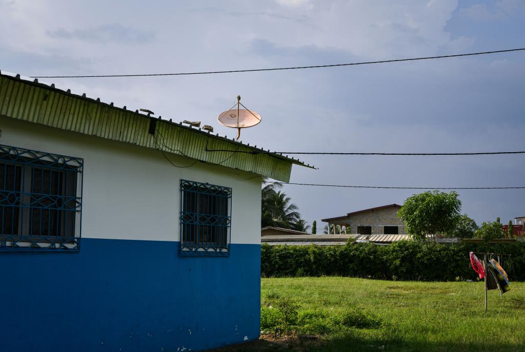 A satellite TV receiver is seen on a roof in Yaou village, Cote d'Ivoire, Jan. 14, 2024. (Xinhua/Han Xu)