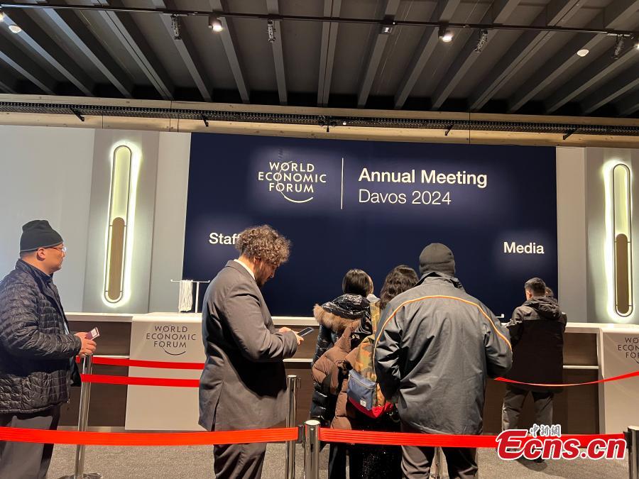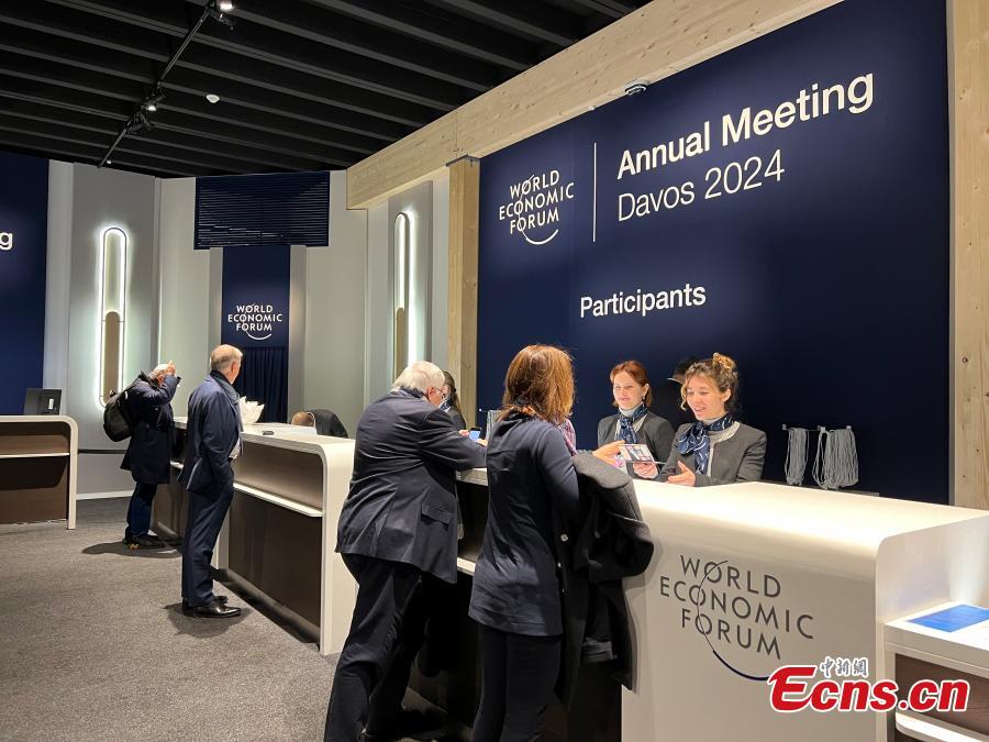Participants make registration at the Congress Center for the World Economic Forum (WEF) Annual Meeting 2024 in Davos, Switzerland, Jan. 15, 2024. (Photo: China News Service/Ma Xiuxiu)
