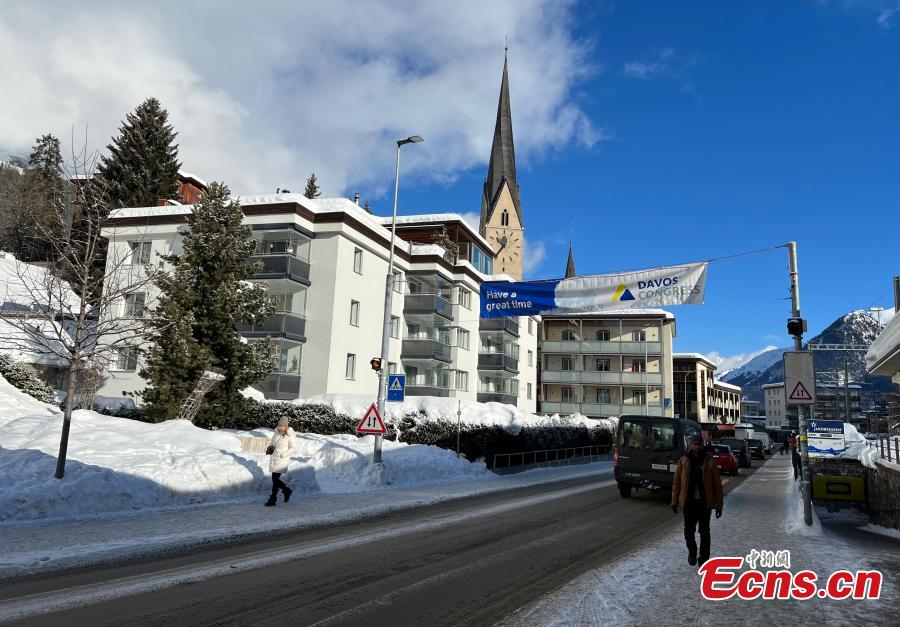 A poster is hung on top of a building to welcome the upcoming 54th WEF Annual Meeting in Davos, Switzerland, Jan. 15, 2024. (Photo: China News Service/Ma Xiuxiu)