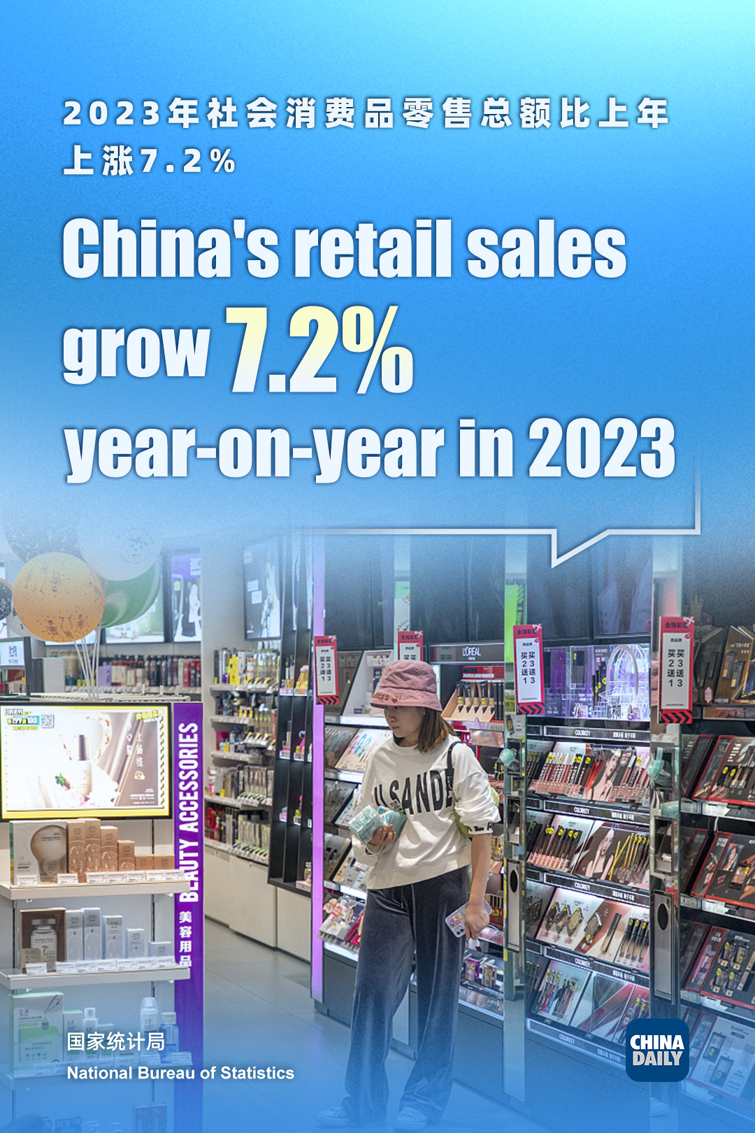 Retail sales, a key measurement of consumer spending, grew by 7.2 percent for the year. And the retail sales in December increased by 7.4 percent versus the 10.1 percent growth a month earlier.
