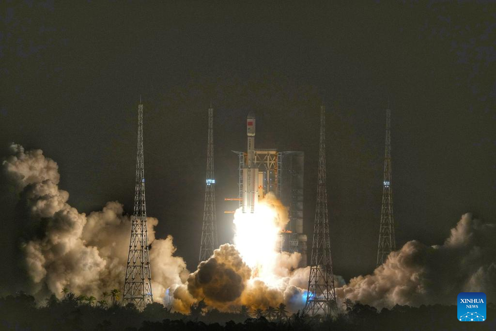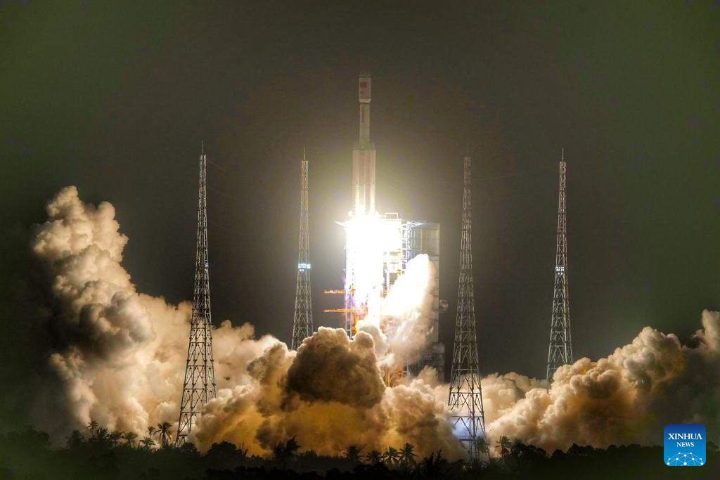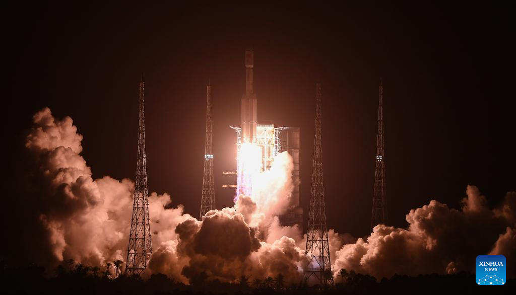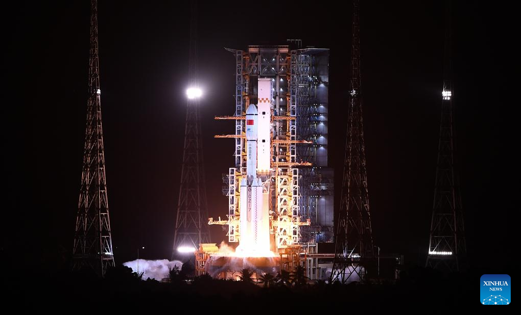 The Long March-7 Y8 rocket, carrying Tianzhou-7, blasted off at 10:27 p.m. (Beijing Time) from the Wenchang Spacecraft Launch Site in the southern island province of Hainan, the CMSA said.