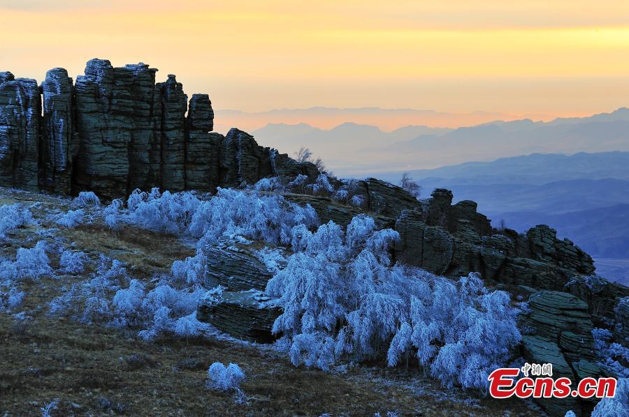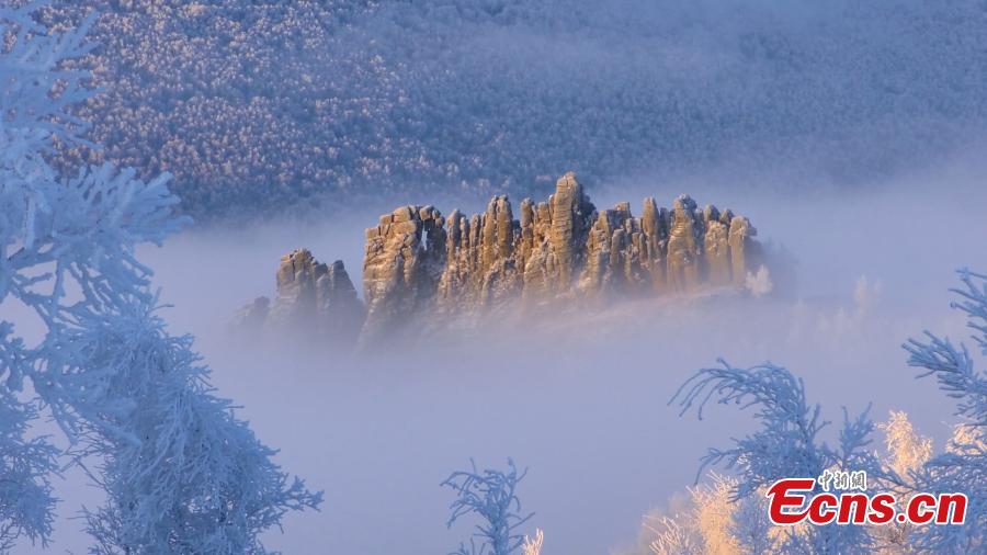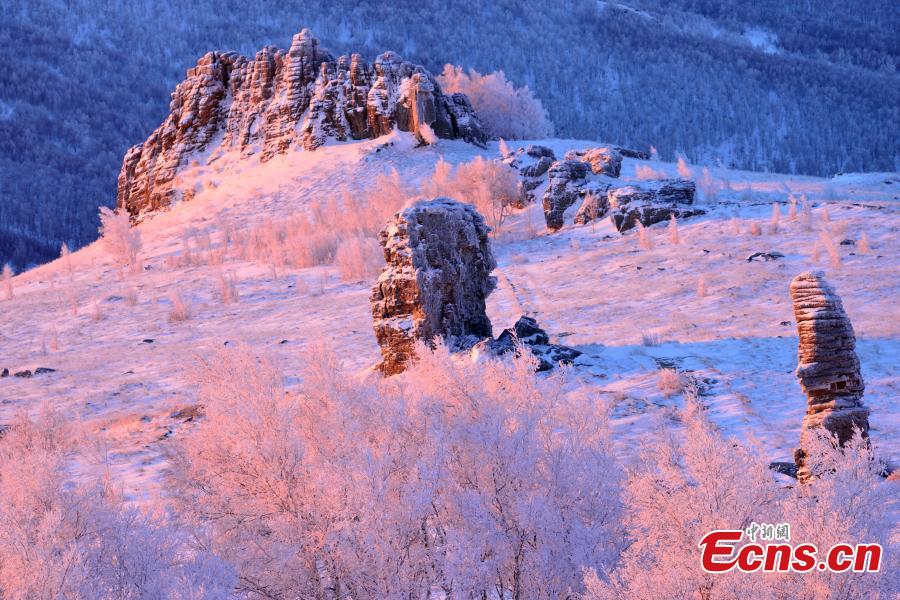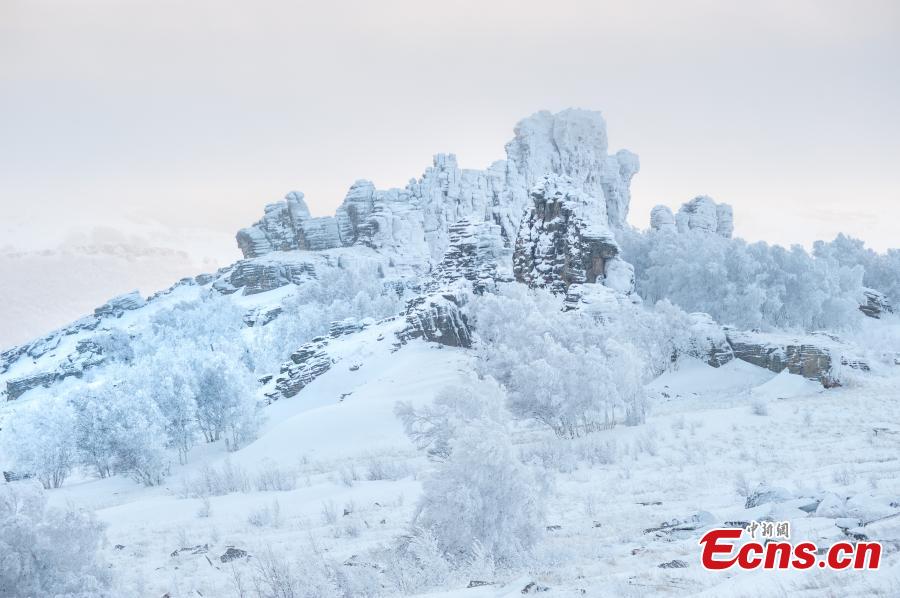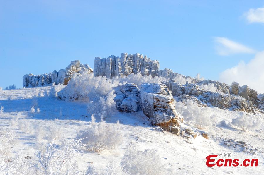 Spectacular rime scenery in Asihatu Stone Forest in Keshiketeng Banner of Chifeng, north China's Inner Mongolia Autonomous Region. (Photo: China News Service/Liu Hai)