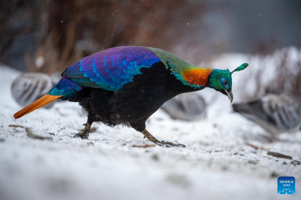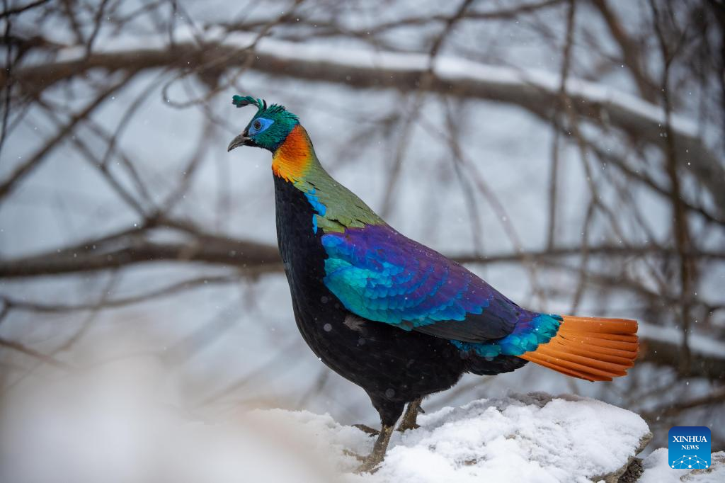 A Himalayan monal is pictured in Shannan City of southwest China's Xizang Autonomous Region, Jan. 17, 2024. (Xinhua/Tenzing Nima Qadhup)