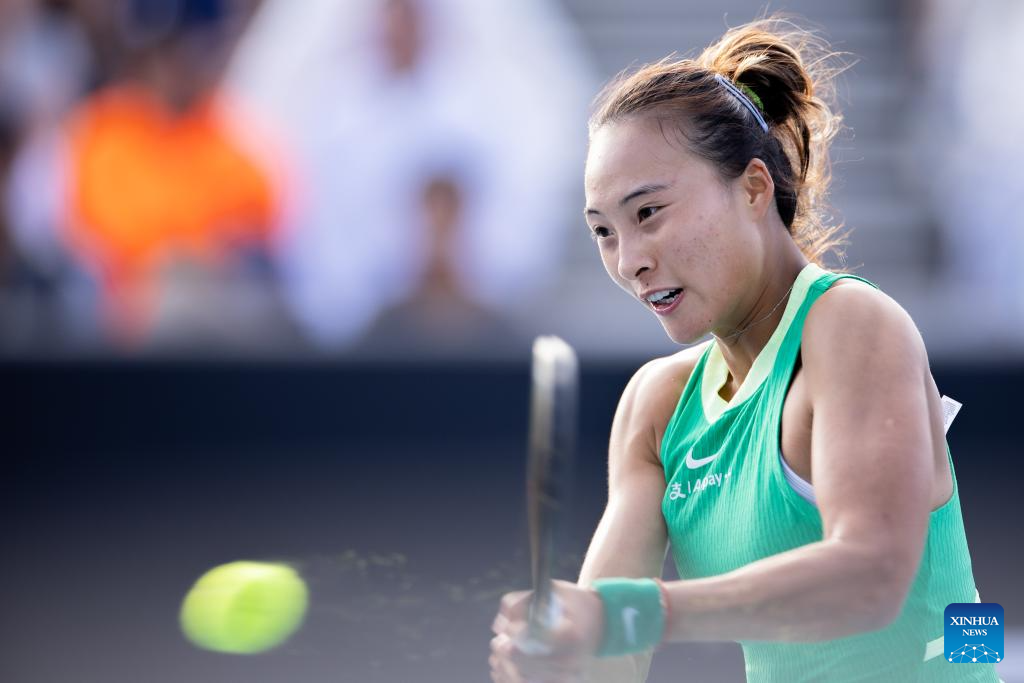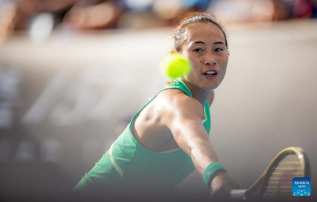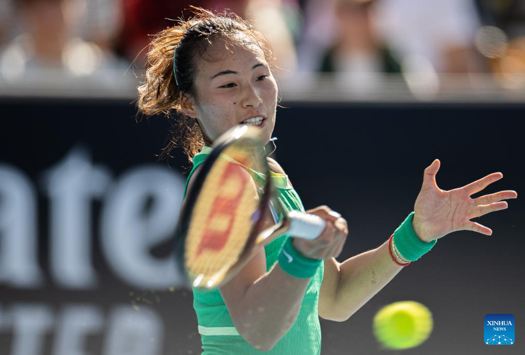 Zheng Qinwen of China hits a return during the women's singles second round match between Zheng Qinwen of China and Katie Boulter of Britain at the Australian Open tennis tournament in Melbourne, Australia on Jan. 18, 2024. (Photo by Hu Jingchen/Xinhua)