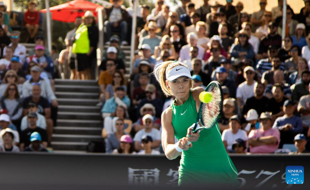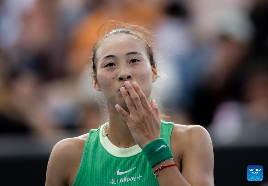 Zheng Qinwen of China acknowledges the spectators after the women's singles second round match between Zheng Qinwen of China and Katie Boulter of Britain at the Australian Open tennis tournament in Melbourne, Australia on Jan. 18, 2024. (Photo by Hu Jingchen/Xinhua)
