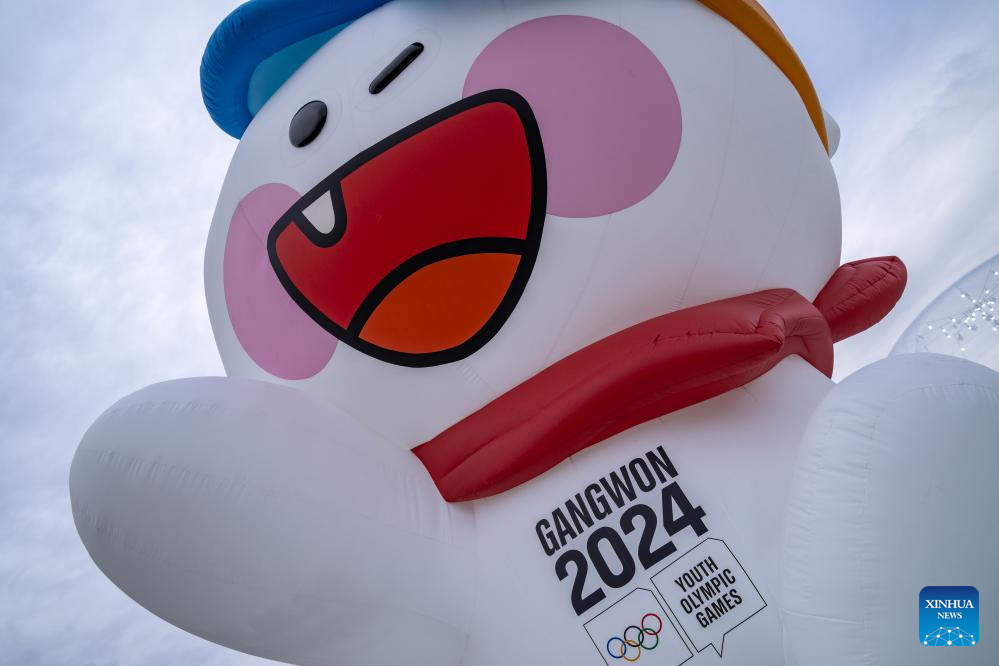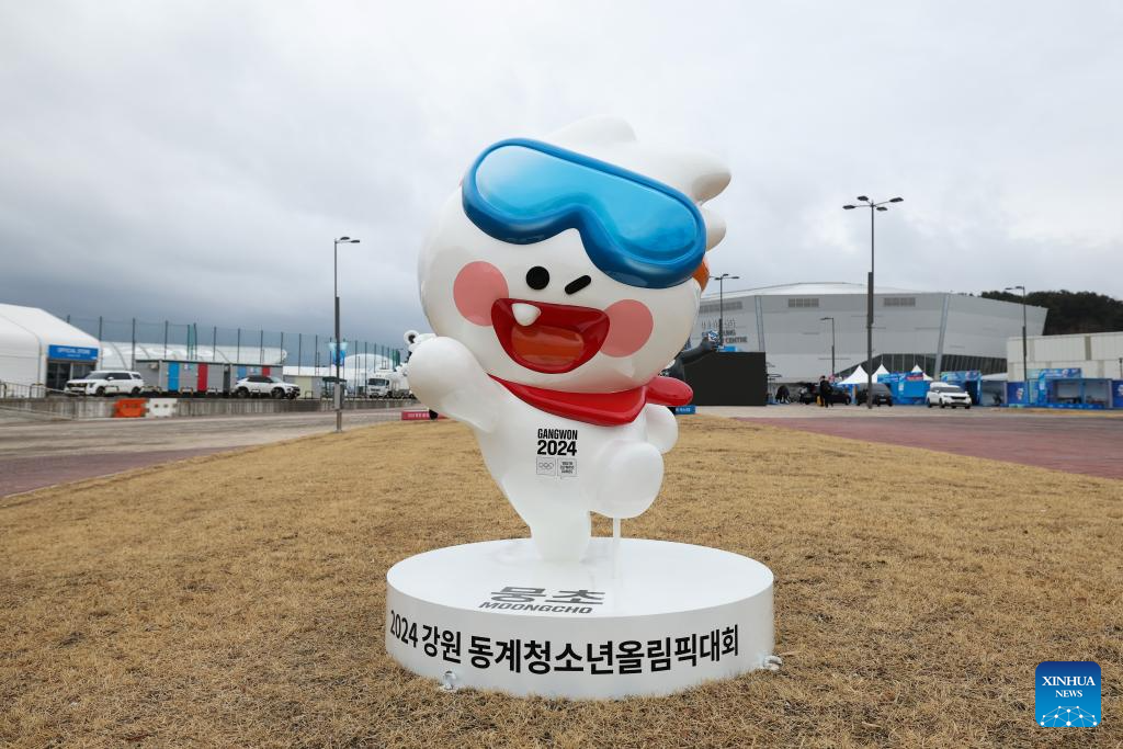Mascot Moongcho is seen in the 2024 Winter Youth Olympic Games (YOG) Village, in Gangneung, South Korea, Jan. 18, 2024. (Xinhua/Yao Qilin)