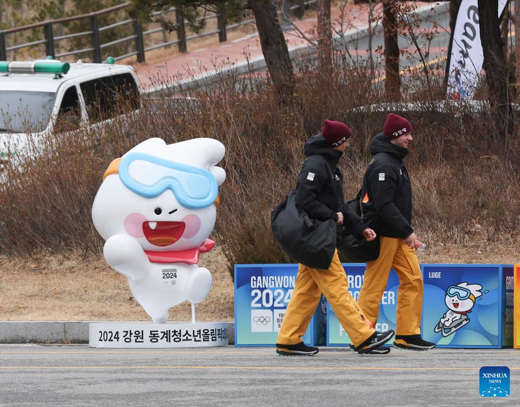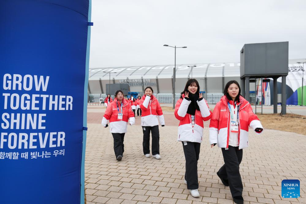 Volunteers walk in the Gangneung Olympic Park in Gangneung, South Korea, Jan. 18, 2024. (Xinhua/Zhu Wei)