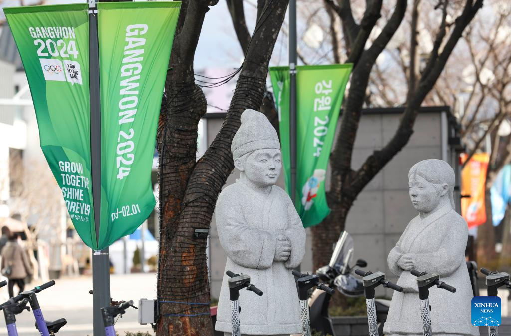 Information of the 2024 Winter Youth Olympic Games is seen in Gangneung, South Korea, Jan. 17, 2024. (Xinhua/Zhang Xiaoyu)