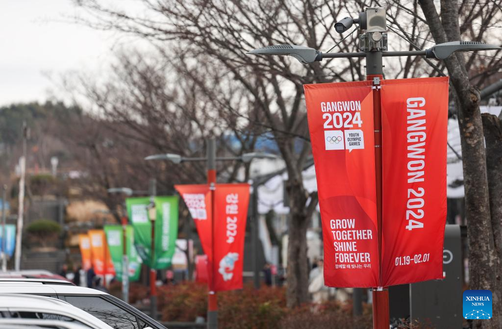 Banners for the 2024 Winter Youth Olympic Games (YOG) is seen in Gangneung, South Korea, Jan. 17, 2024. (Xinhua/Hu Huhu)