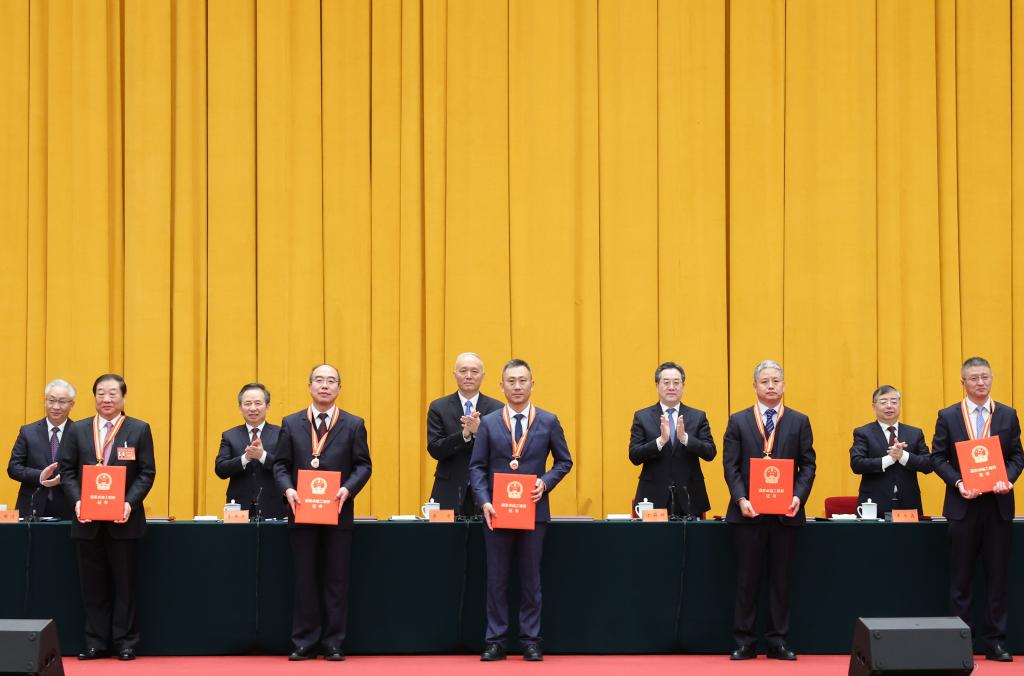 Members of the Standing Committee of the Political Bureau of the Communist Party of China (CPC) Central Committee Cai Qi and Ding Xuexiang attend the ceremony of the National Engineer Awards in Beijing, capital of China, Jan. 19, 2024.