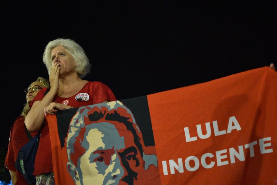 Supporters of former Brazilian President Luiz Inacio Lula da Silva react during a demonstration in support of Lula, in Brasilia, Brazil, April 4, 2018. (Photo by Andre Borges/Xinhua)