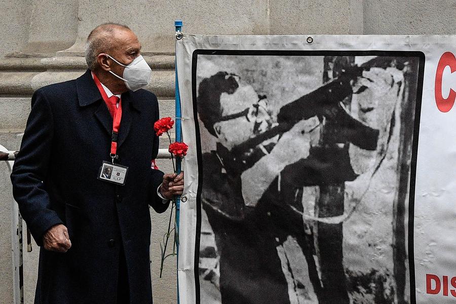 A man pays homage to former Chilean President Salvador Allende and commemorates the 49th anniversary of the military coup launched by Augusto Pinochet in Santiago, Chile, Sept. 11, 2022. (Photo by Jorge Villegas/Xinhua)