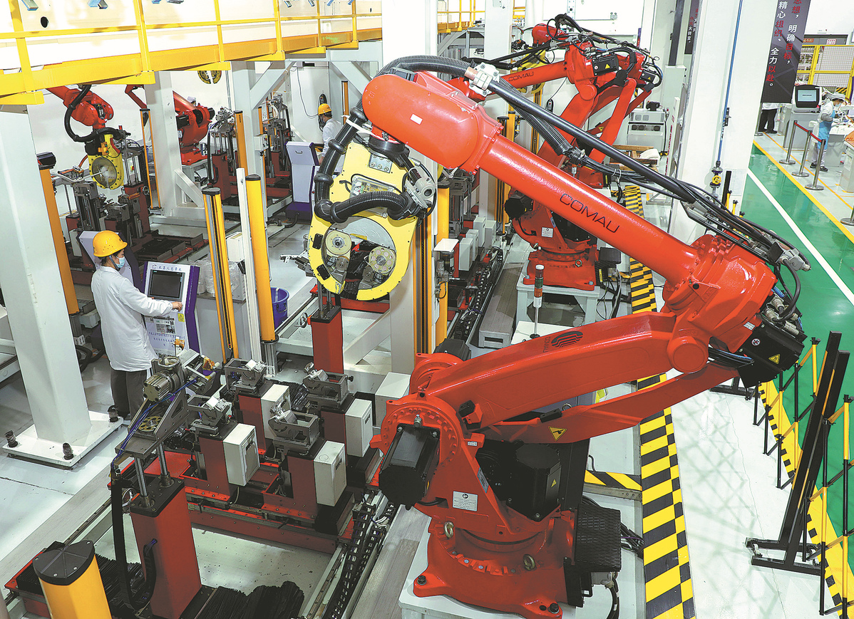 An employee operates machines at a company's digital manufacturing plant in Nanyang, Henan Province, on Dec 15. GAO SONG/XINHUA